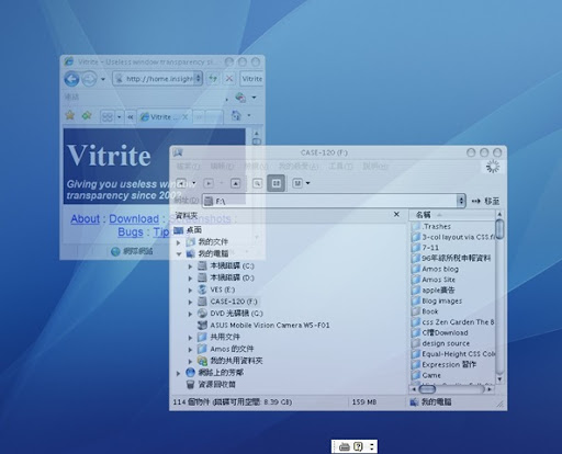 第一套軟體是Vitrite,是我最近在網路上找到的一套可以把視窗變半透明的軟體,需要做安裝,這是一套免費軟體,安裝完後可以常駐在你的電腦中